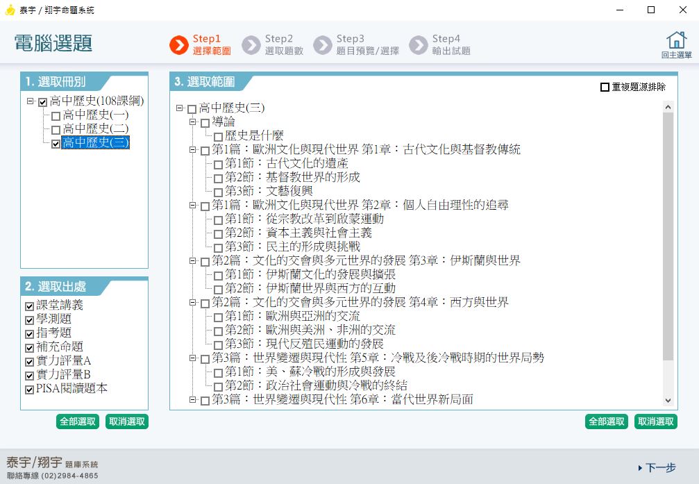 111學年下學期 高中命題光碟 泰宇版 歷史科(一、二、三)(108課綱)題庫光碟